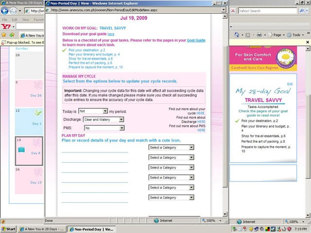 You can also plan and jot down your activities for the day, your mood and your gynecological status for the day.