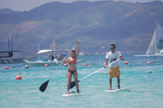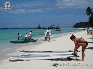 At around the cool months of October to December, Boracay usually has waves. This is when you will see people kite surfing. I forgot the name of the place renting out paddle boards and surfboards actually but you will see them along station 1 with a surfboard standing on the sand with the sign “Surf lessons here.â€