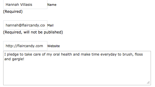 I pledge to take care of my oral health especially now that my three front teeth were all removed due to an accident. Now, more than ever, i will make sure that not only my remaining teeth will get it’s daily total care but also my gums and those in between to keep it all healthy and clean. In observance of good oral hygiene, i promise not to miss a single routine (brushing,flossing and gargling). So i hope Flaircandy and Listerine back my pledge up with a Listerine Total Care Kit. ^_^