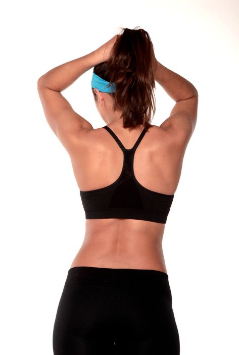 The Low Impact Sports Bras come in two razorback styles. One is designed with a flattering low cut front and a thicker razorback, which comes in white and dark grey. The other was designed with a higher neckline for additional support and coverage and with a thinner razorback for a balanced feel, and is available in the colors pink and black. These two bras were made for comfortable low impact activities such as Yoga, basic floor exercises and Pilates.