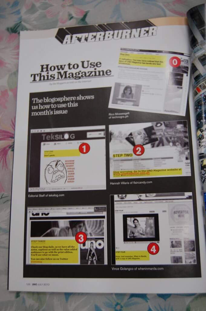 Here’s another feature from last July 2010. UNO Magazine had a special edition where they didn’t use much text on the magazine. We guided the readers on how to use the magazine well.